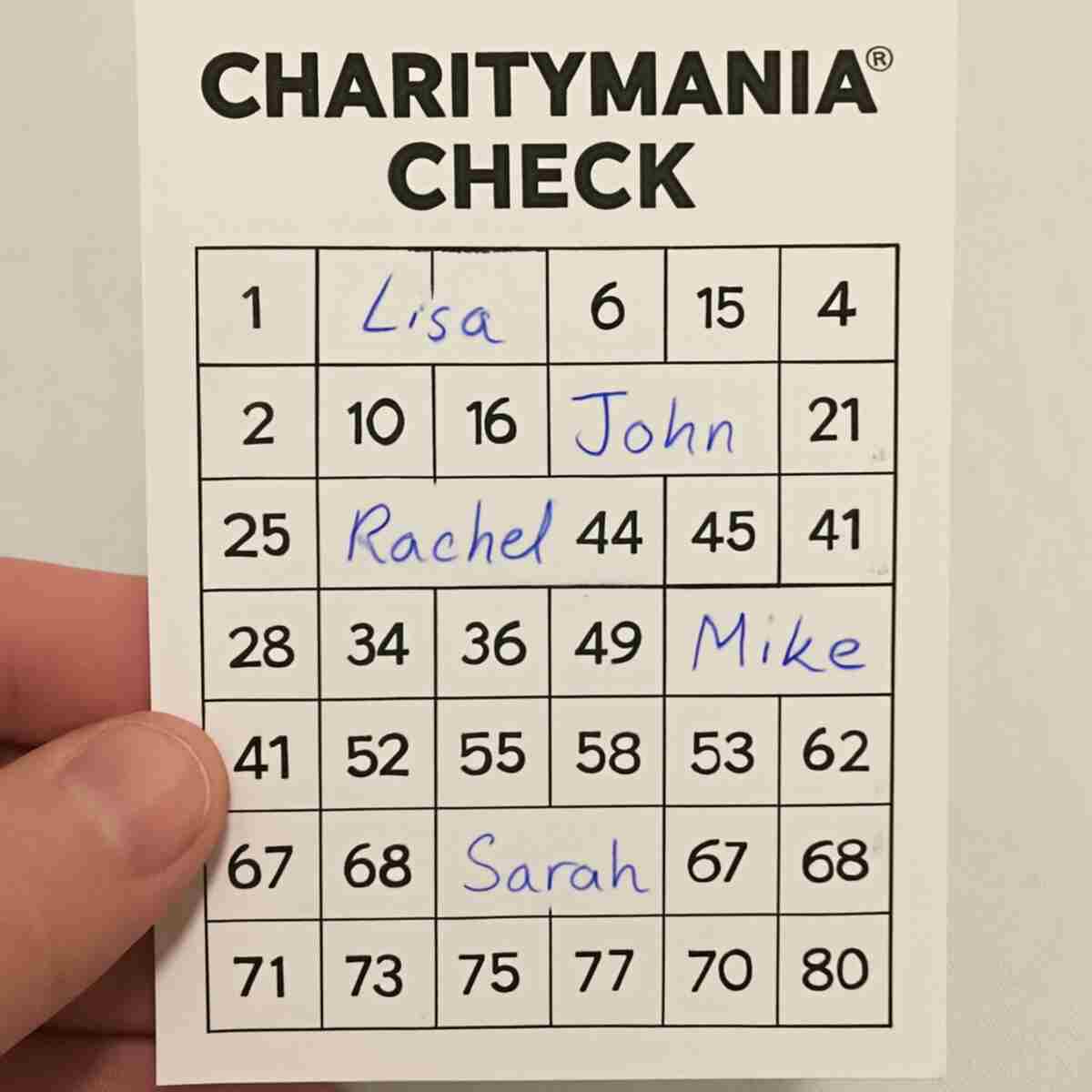 Think of the large game card—the part you fill out—as the master record for your fundraiser. This card, with the supporter’s name next to their chosen number, is the ultimate proof of entry. When you check the CharityMania fundraiser results online, you simply compare the winning numbers to your master card to identify the winner. Even without their stub, the supporter is still in the game because their name is on your official record.